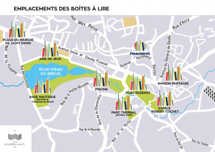 Les Boîtes à Lire sont situées sur tout le territoire de Bourbon-Lancy :